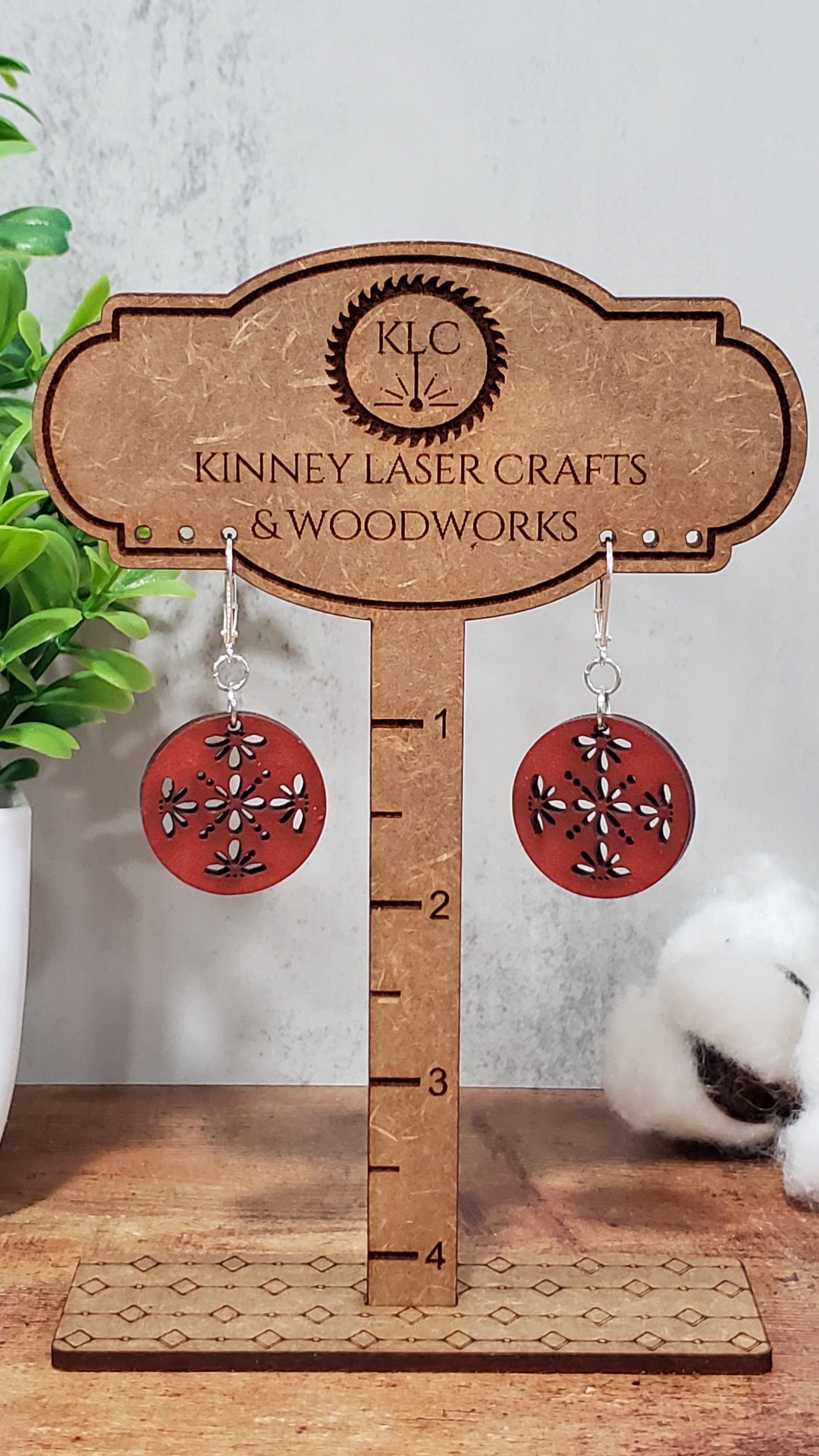 Laser Cut Wood Earrings - Boho - Small - Round - Red