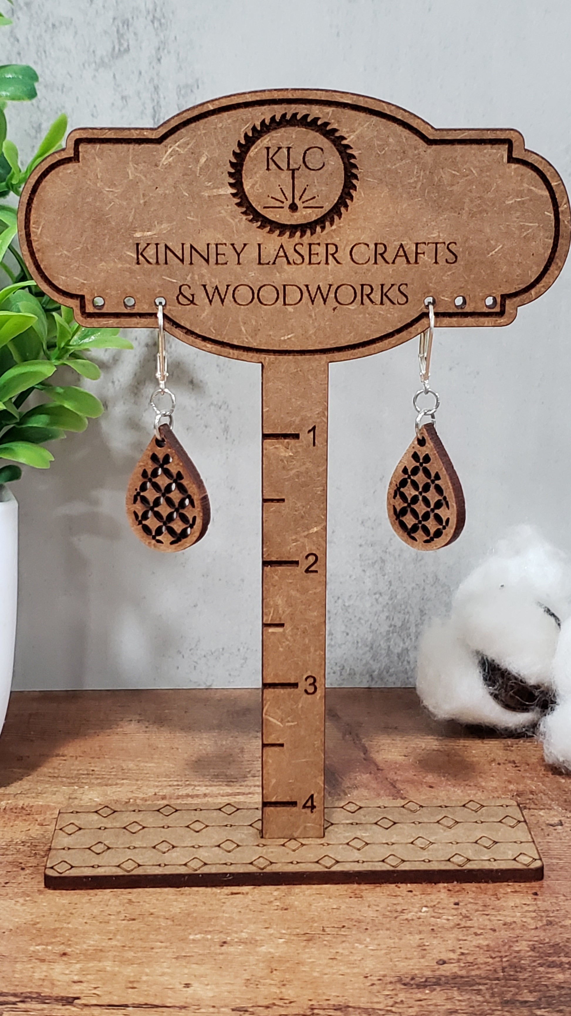 Laser Cut Wood Earrings - Lattice - Small - Teardrop - Natural