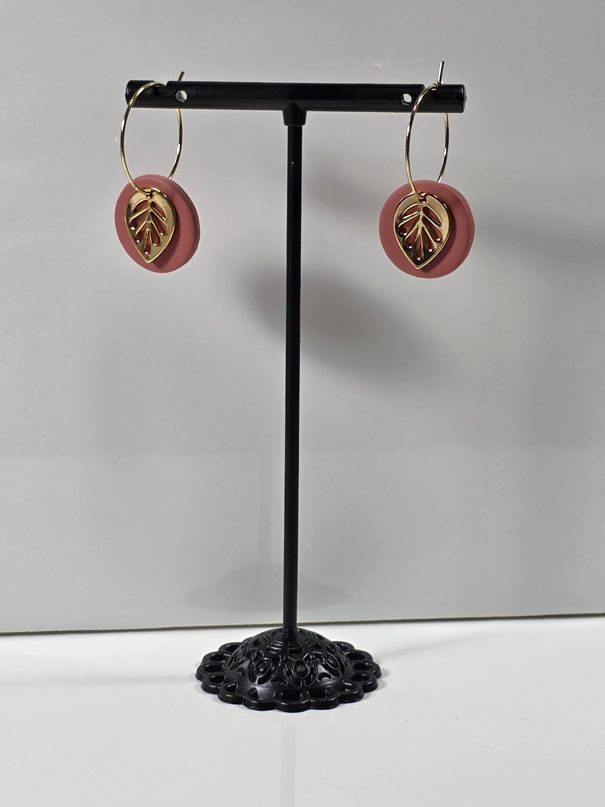 The "Kellie" polymer clay earring is delicate, modern, and just a touch earthy — these earrings bring effortless charm to any look. A smooth, handcrafted clay circle gently dangles from a sleek hoop, while a dainty brass leaf catches the light in front, adding a whisper of shimmer and movement.