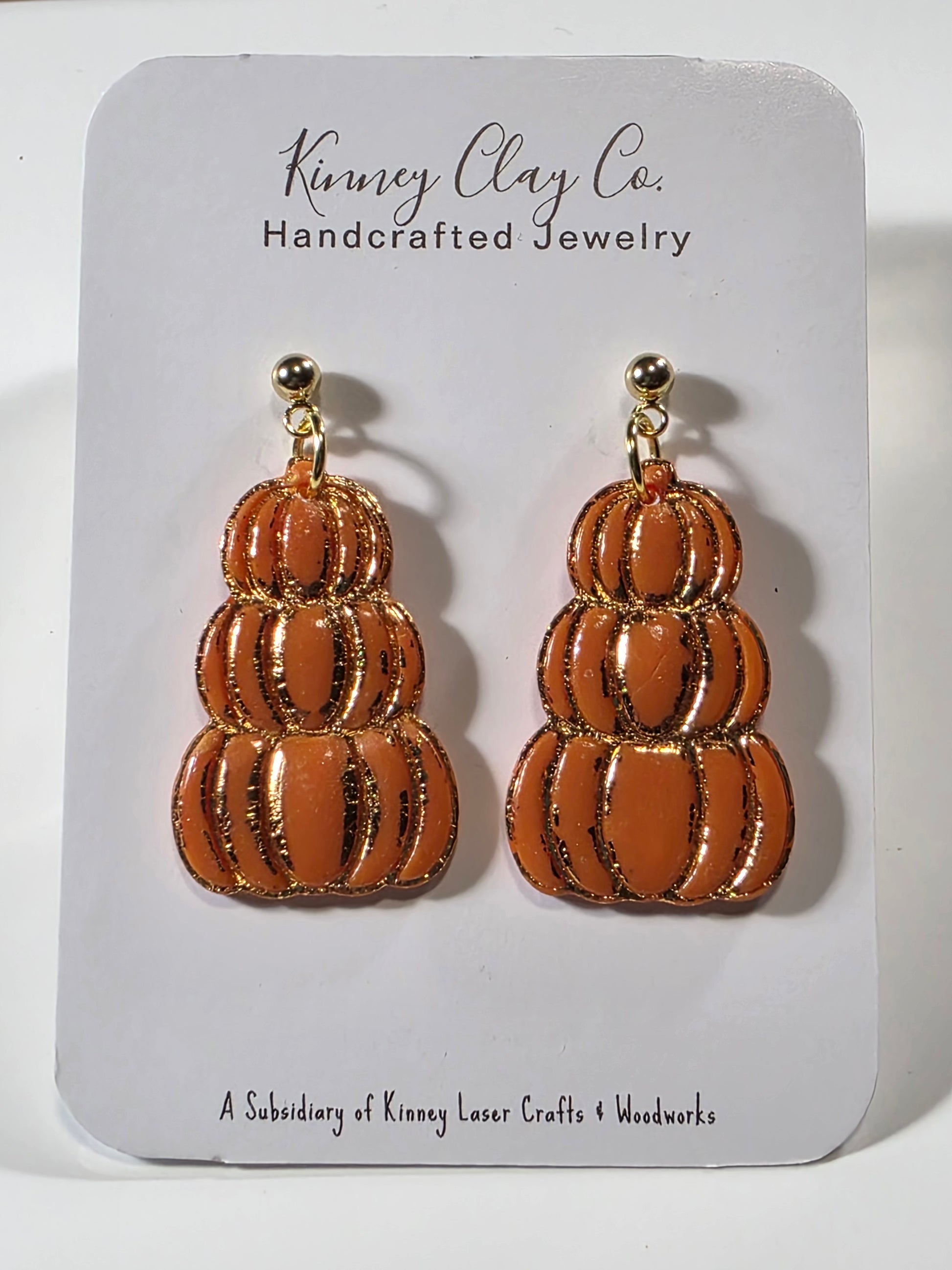 Polymer Clay Earrings - Stacked Pumpkins w/Gold Foil